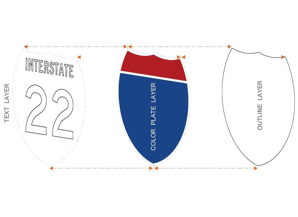 All signs are designed using cubic Bézier curves for precise corners and curved surfaces ensuring the best possible printing and cutting of sign elements.