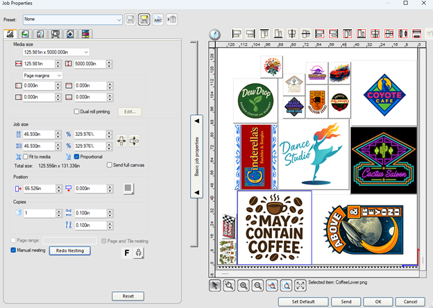 O PhotoPRINT One oferece opções de agrupamento manual, com um clique e automático que ajudam a reduzir o desperdício, mantendo os trabalhos organizados e eficientes.
