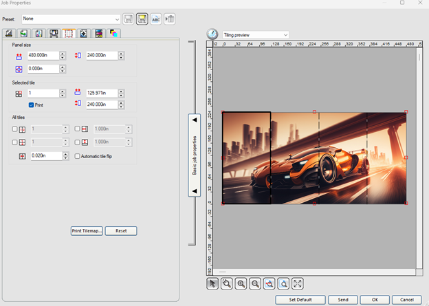 O PhotoPRINT One é ideal para murais, outdoors, gráficos de parede e outras aplicações de grandes dimensões, com ferramentas para sobreposição, impressão seletiva e layouts de Auto-Tile.